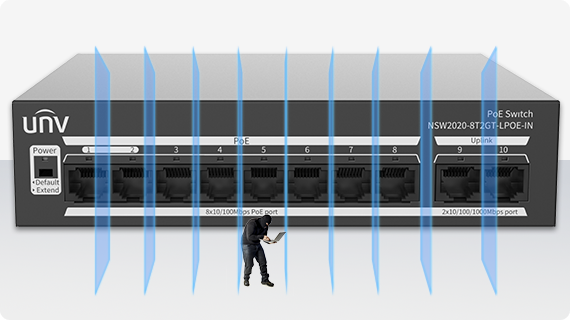 Outdoor cameras are prone to lightning strikes affecting switches. Uniview switches have surge protection, prolonging their lifespan and ensuring IPC operation.
